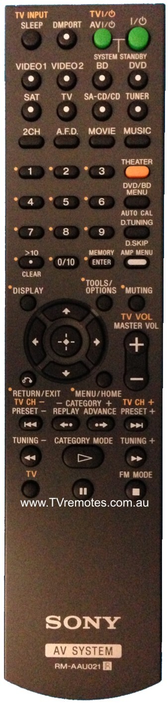 The original SONY remote controls RM-AAU027 and RM-AAU021 are exactly the same, except the original SONY remote control RM-AAU027 is missing the "THEATRE" button.