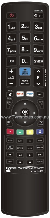 This remote control is a replacement remote control for all LG Televisions, it has all the major buttons and functions of all the original LG remote controls.