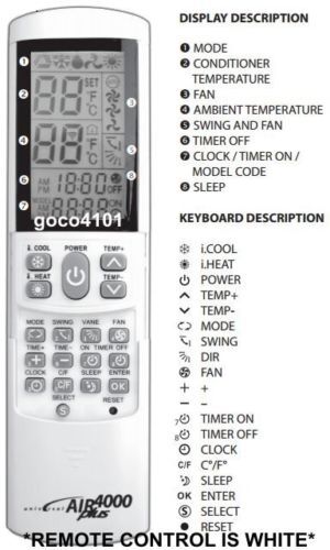 Features: 4000 codes for all brands and models, Temperature Block / Temperature Lock (You can set and lock your preferred minimum and maximum temperature ranges, to limit the ability of running the air conditioner too cold or too hot when not necessary, saving electricity / energy / power bills on running costs, also the extra strain or wear and tear on the unit itself, saving money instantly = $$$)