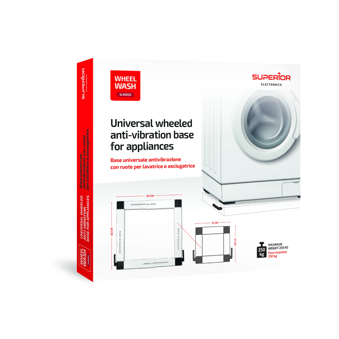 PRODUCT: Universal anti-vibration base with wheels for washing machines or clothes dryers.